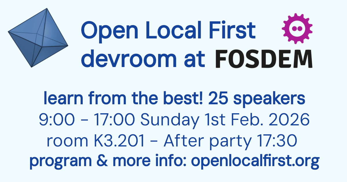 Yjs and Yrs will be present at upcoming FOSDEM’26 with several talks in the Local First devroom.